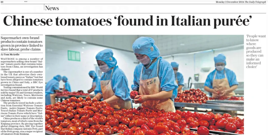 China is grappling with a massive surplus of tomato paste after exports to Italy—one of its key buyers—collapsed amid widespread concerns over forced labour practices in Xinjiang and misleading origin labelling by some Italian companies.