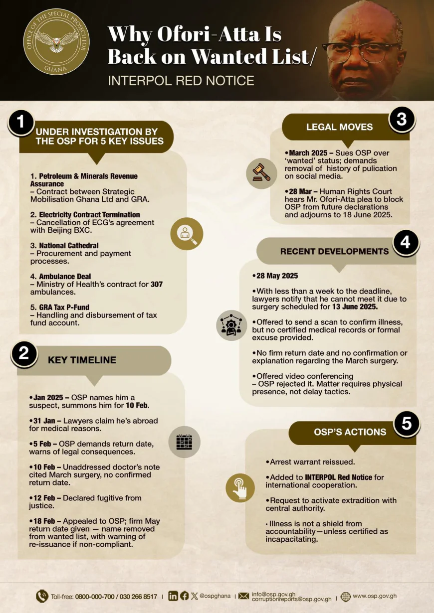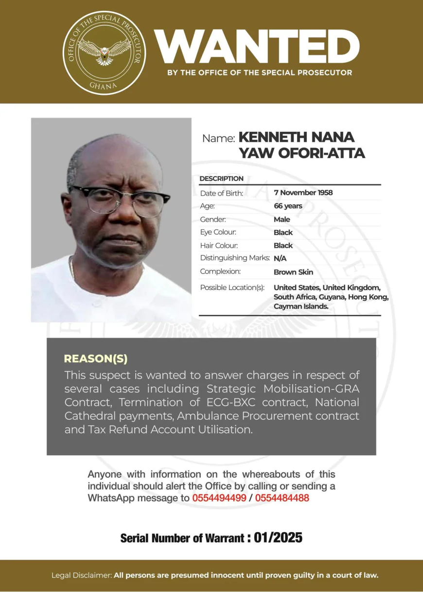 With no appearance or cooperation from Mr. Ofori-Atta, the OSP is now pursuing international action to ensure his arrest and return to Ghana to face justice.