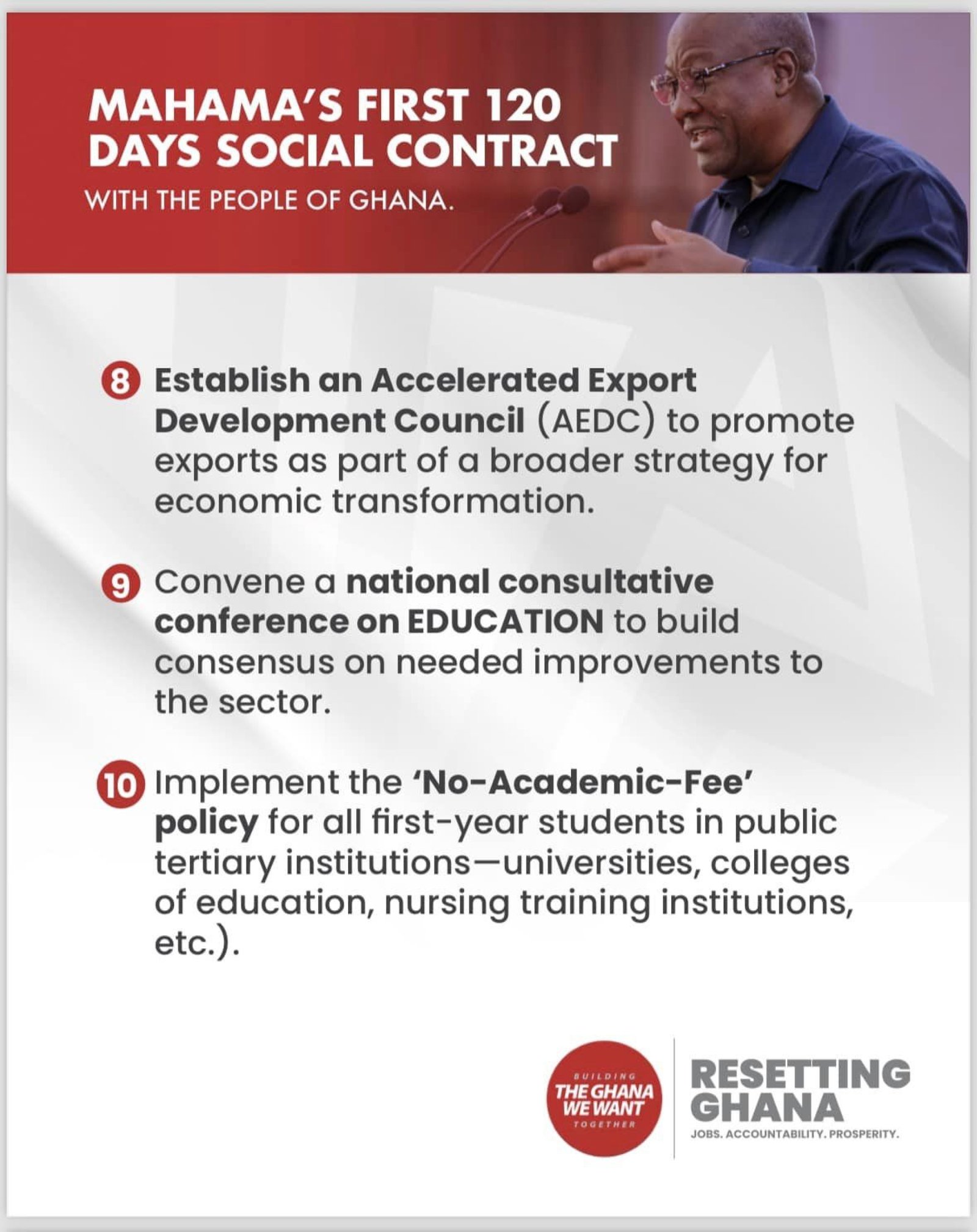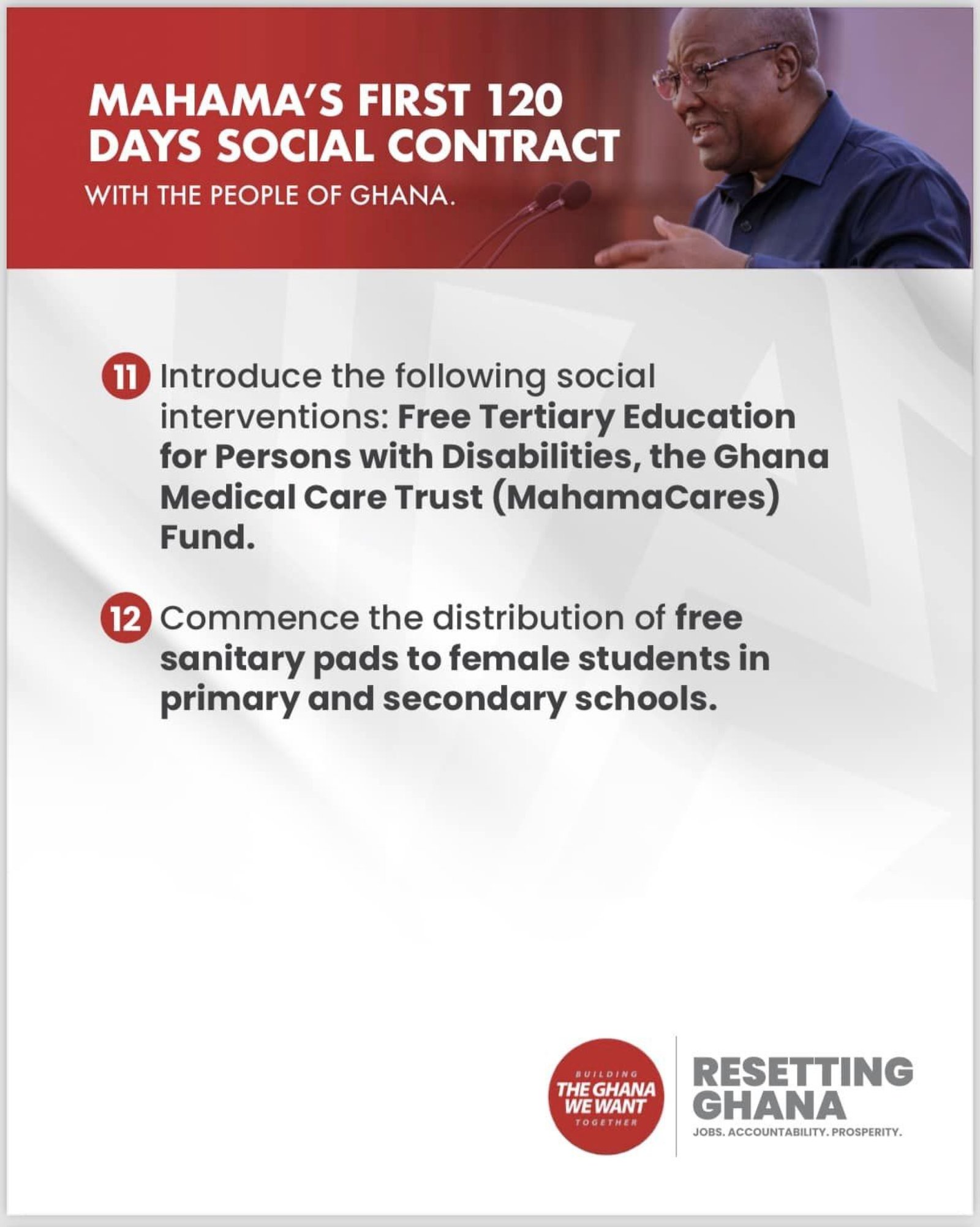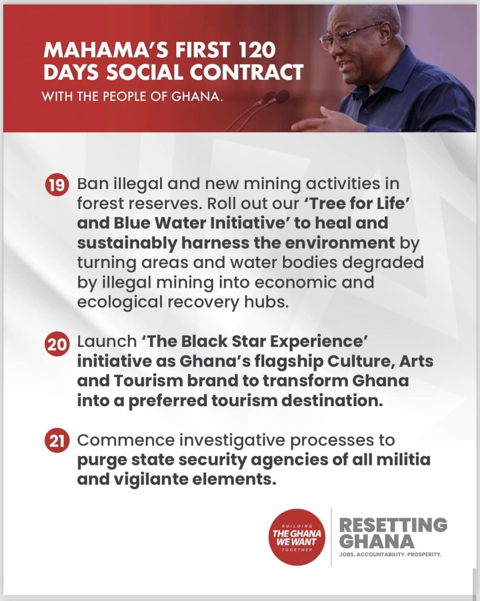 Mahama's first 120 days social contract with the people of Ghana