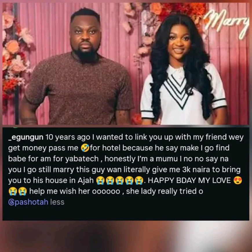 Ten years ago, I planned to set you up with a friend who had more money than I did, Egungun of Lagos shared. The Nigerian content creator posted on social media to celebrate his wife's birthday with humor and love.